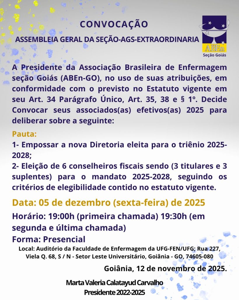 Convite para a Assembleia Geral Extraordinária da ABEn-GO – Posse da Nova Gestão 2025-2028