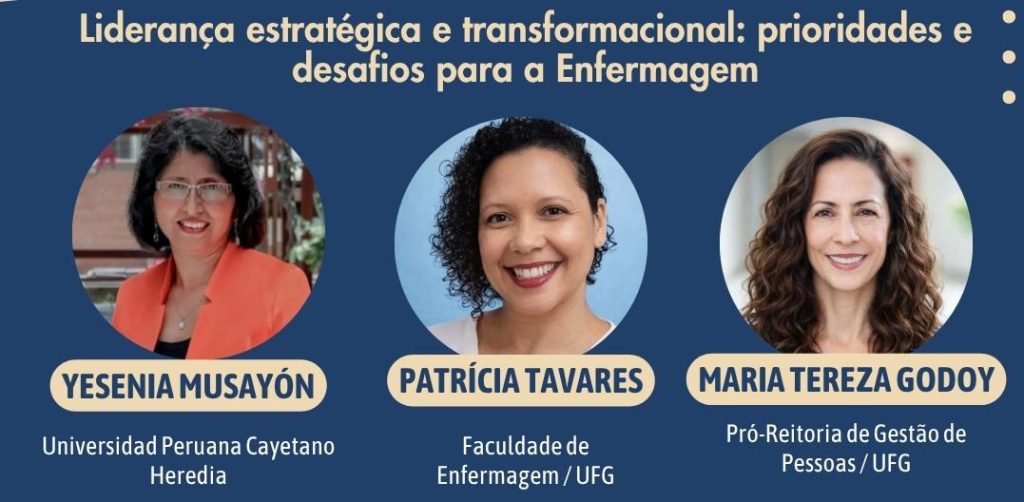 - 13 de abril: Liderança transformacional – Parte I – conhecimentos, habilidades e atitudes para exercê-la – Dra Patricia Tavares (Faculdade de Enfermagem da Universidade Federal de Goiás – FEN-UFG).
